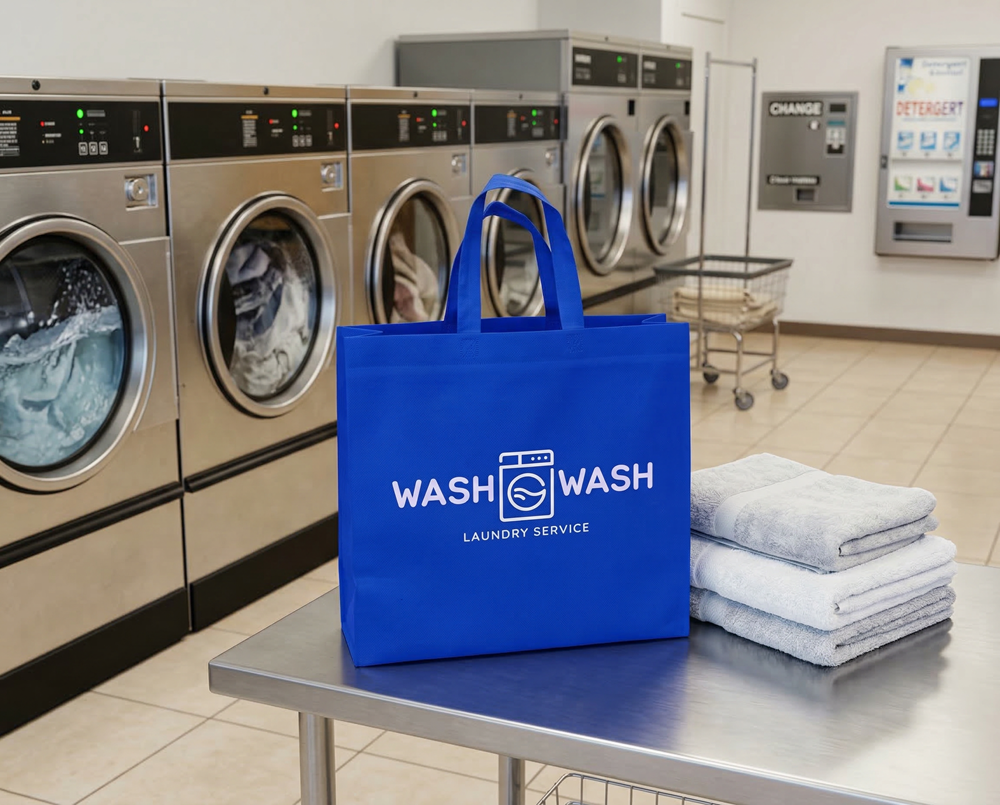 Por un lado, permiten a los clientes transportar grandes cantidades de ropa de forma cómoda y resistente. Por otro, cuando se personalizan con la identidad visual de la lavandería, se convierten en una herramienta de visibilidad de marca extremadamente efectiva. Cada bolsa reutilizable que circula por la ciudad funciona como una pequeña pieza de publicidad permanente, ayudando a que el negocio gane reconocimiento y presencia en su entorno.