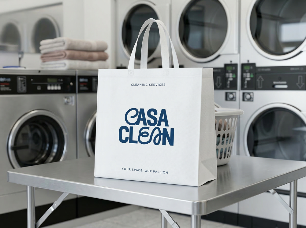 Por un lado, permiten a los clientes transportar grandes cantidades de ropa de forma cómoda y resistente. Por otro, cuando se personalizan con la identidad visual de la lavandería, se convierten en una herramienta de visibilidad de marca extremadamente efectiva. Cada bolsa reutilizable que circula por la ciudad funciona como una pequeña pieza de publicidad permanente, ayudando a que el negocio gane reconocimiento y presencia en su entorno.